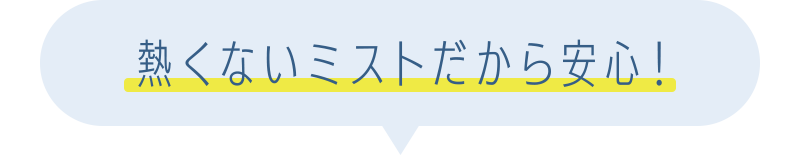 加熱をしない超音波式だから安全にお使いいただけます。 次亜塩素酸水対応の噴霧器だから、加湿しながら清潔をキープ。